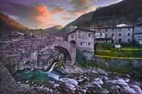 Fabbriche di Vallico oud dorp en de oude brug over de beek. Fabbriche di Vergemoli, Apuane park, Garfagnana, Toscane, Italië