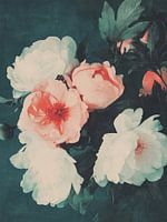 Een verfijnde bloemcompositie die klassieke romantiek uitstraalt. Deze print toont een boeket van delicate pioenen in tinten ivoor en zachtroze, tegen een diepe, bijna fluweelgroene achtergrond. De bloemen lijken haast geschilderd met een penseel van nostalgie en rust. Perfect voor liefhebbers van botanische kunst, vintage esthetiek en…