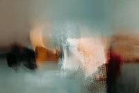Een abstract kunstwerk waarin zachte aquarelachtige tinten samenkomen met diepe accenten van oker, rood en zwart. De vloeiende penseelstreken en gelaagde structuren roepen een gevoel van beweging en mysterie op. Dit schilderij is een moderne blikvanger die elegantie en diepte toevoegt aan elk interieur, of het nu gaat om een minimalistische woonkamer of een stijlvolle werkruimte.