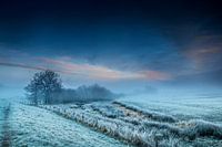 uitzicht over het Bossche Broek op een koude mistige ochtend voor zonsopkomst