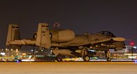 Een Fairchild Republic A-10 Thunderbolt II (Warthog) blijft een nachtje over op Schiphol-Oost.