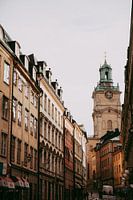 Warme tinten in deze prachtige straat van Stockholm Zweden. Een fotografieprint gemaakt in de herfst.
