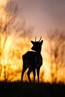 Aan het eind van de dag staat dit jonge damhert even te poseren in het prachtige laatste licht van de dag.