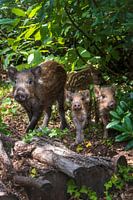 Deze familie wilde zwijnen heb ik gefotografeerd in Zuid Frankrijk. De familie bestond uit moederzeug met twee pubers van een paar maanden oud en drie kleinere biggetjes van een paar weken oud (zo aandoenlijk met die gestreepte pyjamaatjes). Hier staat een van de twee pubers met de drie kleintjes op de foto. Ze waren erg nieuwsgierig , niet echt bang maar wel op hun hoede, precies als ikzelf.....