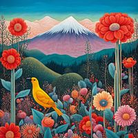 De scène zit vol intrigerende details: vloeiende lijnen en speelse patronen lopen naadloos over in abstracte structuren, waardoor een gevoel van beweging en diepte ontstaat. Elk element, van bizarre bomen tot betoverende bloemen, draagt bij aan een bijna hypnotiserende sfeer die uitnodigt tot verkenning. De kleurrijke paletten stralen energie uit, maar blijven harmonieus in balans, wat het werk zowel dynamisch als sereen maakt.