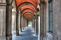 Het Binnenhof van Den Haag is het hart van de Nederlandse politiek. Genoeg moois te vinden, zoals deze prachtige doorloop van poorten en ramen. Zie andere foto voor de buitenkant, minstens zo spectaculair om exclusief aan jouw muur te hangen!