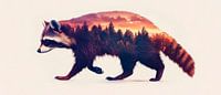 Een nieuwsgierige wasbeer met een fantastisch tafereel van bossen en bergen die opgaan in zijn vacht. Deze harmonieuze combinatie van dier en natuur brengt een vleugje avontuur in huis. Perfect als levendig accent in de woonkamer, waar het de verbeelding prikkelt en een gesprek op gang brengt.