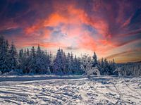 Fantastische winterdag in het Ertsgebergte met sneeuw en zonsondergang