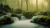 Bomen, mos en watervallen