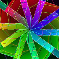 Einfach ein Rad mit verlaufenden Farben vor einem Hintergrund mit verlaufenden Farben und mit Bändern aus verlaufenden Farben ... es dreht sich ...