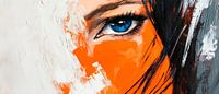 Een intense look, gevangen in levendige kleurtonen, trekt onmiddellijk de aandacht. De mix van diepzwarte manen en levendig oranje creëert een krachtig spel tussen mystiek en expressie. Perfect voor de woonkamer om een gesprek op gang te brengen en bezoekers te intrigeren. Het voegt een speciaal tintje toe aan elke kamer.