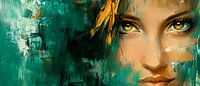 Met stralende ogen en een vleugje mysterieuze energie betovert het kunstwerk de kijker. De harmonieuze kleurschakeringen van groen en zachte aardetinten creëren een ontspannen sfeer die ideaal is voor een slaapkamer of creatieve studio. Inspiratie komt hier tot leven!