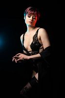Fashion portrait of a 23 year old white woman with short, dyed hair, Brussels, Belgium