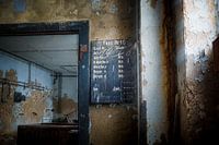 Als stille getuige van een industrie die al lang verdwenen is, hangt dit roosterbord van de leerlooierij nog steeds aan de vervallen muur, de krijttekens vervaagd maar niet uitgewist. "Fass Nr. 16" (Vat Nr. 16) volgde ooit het nauwgezette proces van de leerproductie, van weken tot bleken, dat nu onvolledig is gebleven. De afbladderende…