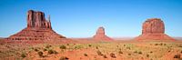 Das Monument Valley ist eine Ebene auf dem Colorado Plateau an der südlichen Grenze des US-Bundesstaates Utah zu Arizona. Es liegt innerhalb der Navajo-Nation-Reservation. Die Landschaft diente bereits als Kulisse bei vielen Filmen. Hier eine schöne Panorama Ansicht der bekanntesten Erhebungen (West Mitten Butte, East Mitten Butte und Merrick Butte). Herrliche Landschaft zum Genießen!