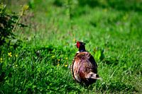 Ik heb deze foto van een fazant gemaakt in de Polder Arkemheen bij Nijkerk in Nederland. Deze fazant liep over het gras naar eten te zoeken. Echt schuw was deze fazant ook niet echt, waarschijnlijk is hij gewend aan mensen die over de nabij gelegen dijk fietsen. Gezien de gekleurde kop denk ik dat het een mannetje is. Zoals je kan zien…