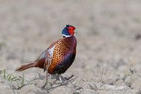 Deze fazantenhaan liep aan de rand van een boerenakker en bleef even staan toen ik de auto stopte. Dat gaf me mooi de gelegenheid om deze foto te maken.