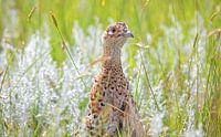 Deze vrouwtjes Fazant zat in natuurgebied de slufter op Texel. Ze beschermde haar jongen en keek af en toe waakzaam boven het gras uit.