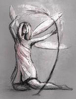 Over ‘Fee in grijs roze en wit in krijt tekening stijl’ van Emiel de Lange