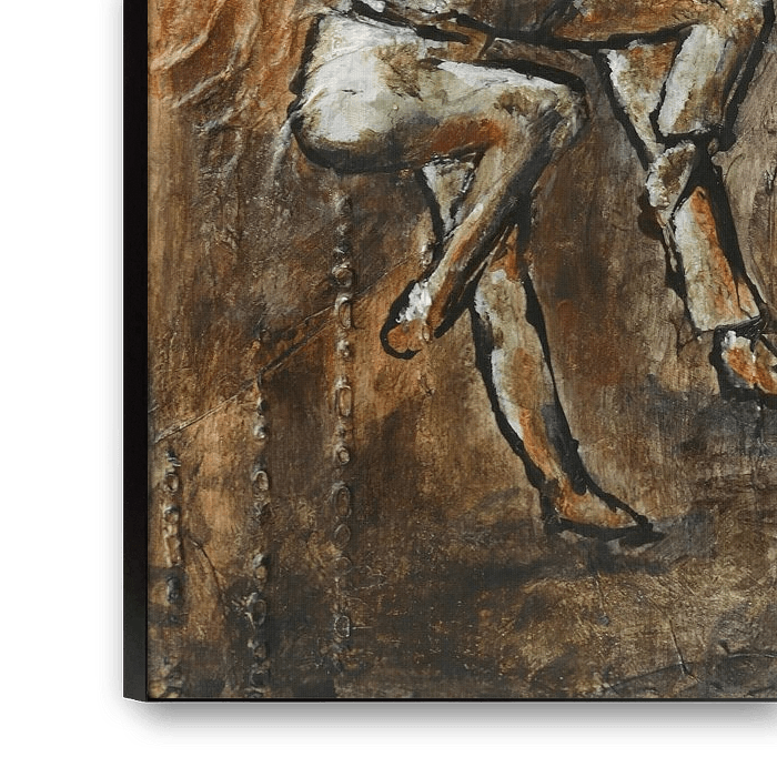 Kunst op hout, ga met de flow van de muziek. Geïnspireerd door mijn dochters dansend op een podium, ze voelen de muziek en reageren erop. Ik hoop dat men de sereniteit van het werk zien en voelen en dat misschien kunnen meenemen in het dagelijks leven.