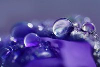 Blue Rain, Blauwe regen. Een fijne verfrissende en sfeervolle eyecatcher! Druppels op een bloemblad. Schitteringen en een mooi bokeh zie je in dit beeld. Een fijne en unieke macro-opname die prachtig zal staan bij hout, wit, steen en staal.