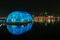 Drijvend paviljoen in Rotterdam. Op de achtergrond de Maassilo.