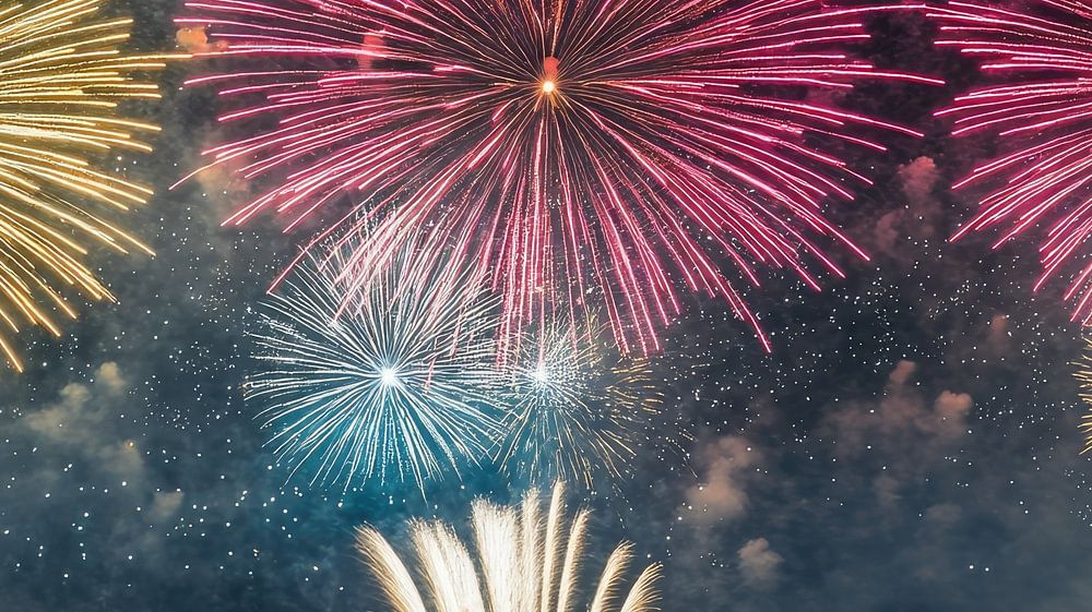 Beschrijving: De kleurrijke uitbarstingen van vuurwerk verlichten de donkere nacht en creëren een feestelijke sfeer vol magie.
