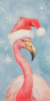 Een roze flamingo met een feestelijke kerstmuts. Breng de warmte van kerst in jouw huis met dit charmante werk!