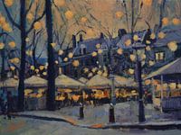 Een pittoresk pleintje aan het einde van een zonnige maar koude novemberdag. In Maastricht branden de lampjes boven het sfeervolle Onze Lieve Vrouwe Plein. Mensen genieten onder de parasols van de warmte, glühwein en gebak. De feestmaand komt er aan!