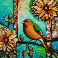 Ieder sympathiek mens houdt van vogeltjes is mijn uitgangspunt voor deze serie vogels. Vaak zie je zulke vogels vliegen, maar als ze gaan rusten schuilen ze het liefst tussen de takken van een struik of hoog in de bomen. Zulke vogels hebben altijd iets symbolisch voor mij gehad; ze zijn heel sterk van zichzelf maar tegelijkertijd zo kwetsbaar. Ik ben geen vogelexpert en in deze serie liet ik me gaan in de meest onmogelijke kleuren. In het echt bestaan ze niet maar in mijn gedachten nemen ze een speciale plaats in. Ik weet het: Ik zal altijd een kind blijven.