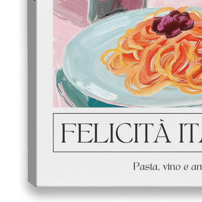 Motief van pasta en rode wijn in vrolijke pastelkleuren, stijl acrylschilderij met typografie Thema Italië, wijn, liefde, uitgave poster