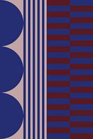 Marineblauwe en warmbruine kleuren, heldere vormen geïnspireerd op Scandinavisch design en wonen.