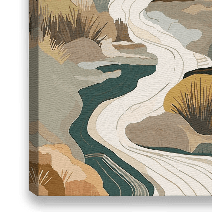 Maak kennis met "Feng Shui Rivier" uit onze Earth Collection. Dit werk combineert een harmonieuze mix van bruine, groene en crèmekleurige tinten en roept een gevoel van rust en balans op.