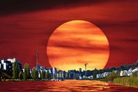Fotomontage bij zonsondergang