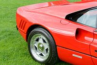 Ferrari 288 GTO raceauto uit de jaren 80 in Ferrari rood. De Ferrari GTO is gebouwd om deel te nemen aan de nieuwe Group B Race-serie. De GTO presteerde indrukwekkend, met 0-60 mph keer rond de 5 seconden en een topsnelheid van 189 mph (304 km / h), waardoor het de eerste straat legale productieauto is die 300 km / u haalt. De auto is te zien tijdens het 2017 Classic Days-evenement op Schloss Dyck. Mensen op de achtergrond kijken naar de auto's.