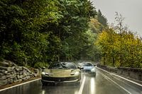 Twee supercars in actie in de Zwitserse Alpen. De Ferrari 296 GTS en de Mercedes-AMG GTR Pro.