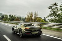 De Ferrari 296 GTS in actie op de snelweg van Zwitserland, onderweg naar een prachtige bergpassen.