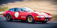 Ferrari 365 GTB/4 Daytona klassieke racewagen op het circuit van Zandvoort. De 365 GTB/4 is een tweezits grand tourer die van 1968 tot 1973 door Ferrari werd geproduceerd. Hij kreeg de bijnaam Daytona na Ferrari's 1-2-3 finish in de 24 uur van Daytona in februari 1967. Afbeelding met retrolook.