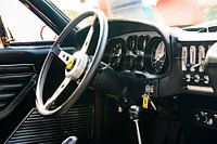 Dashboard en interieur van een Ferrari 365 GTB Daytona klassieke Italiaanse sportauto uit de jaren 70. De auto staat geparkeerd in de paddock tijdens het Italia a Zandvoort-evenement op het circuit van Zandvoort.