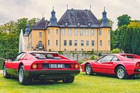 Ferrari 512 BB of Berlinetta Boxer Italian 1970s en Ferrari 308 GTB 1980s Italiaanse sportwagens tentoongesteld voor Schloss Dyck.