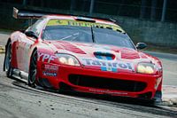 Ferrari 550 GTS Maranello Escudería ACA Argentina op het circuit van Zolder tijdens de FIA GT-race van 2008 op Zolder in België. Aanvankelijk bekend als 550 GTO en daarna omgedoopt tot 550 GTS, zouden er in totaal tien auto's worden gebouwd door Prodrive met een 6,0-liter atmosferische Ferrari V12-motor die 600 pk produceerde.