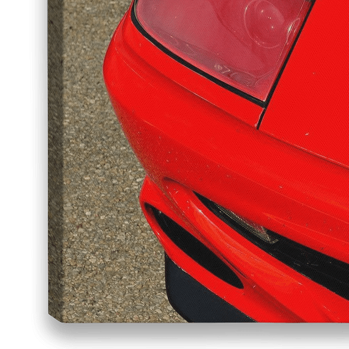 Detail op een rode Ferrari 550 Maranello sportwagen.