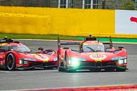 Ferrari AF Corse #50 Ferrari 499P hypercar Ferrari 3.0 L Turbo V6 bestuurd door Antonio Fuoco, Miguel Molina, Nicklas Nielsen, gevolgd door de #51 Ferrari tijdens de 2023 TotalEnergies 6 Hours of Spa-Francorchamps - FIA WEC race op Circuit de Spa-Francorchamps.