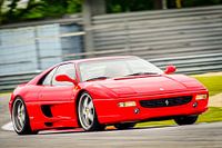 Ferrari F355 Berlinetta sportwagen rijdt door een bocht op het TT circuit van Assen. De F355 wordt algemeen beschouwd als een van Ferrari's meest op de bestuurder gerichte V8-modellen, waarbij analoge puurheid wordt gecombineerd met de nieuwste technologie uit de jaren negentig. De F355 is uitgerust met een 3,5-liter V8-motor die 375 pk levert bij 8.250 tpm, gekoppeld aan een door Pininfarina ontworpen carrosserie met aerodynamica die is verfijnd in windtunnels.