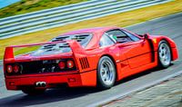 Ferrari F40 supercar uit de jaren 1980 rijdt op het circuit van Zandvoort. De F40 werd ontworpen om Ferrari's 40e verjaardag te vieren en was de laatste Ferrari die persoonlijk werd goedgekeurd door Enzo Ferrari, de oprichter van de Italiaanse sportwagenfabrikant. De F40 (Type F120) is een V8 sportwagen met middenmotor en achterwielaandrijving, voorzien van twee turbo's.