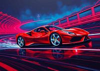 Koop de illustratie Ferrari F8 Klassiek Neon van MIROKKU als print op canvas, aluminium dibond, (ingelijste) fotoprint, behang en ArtFrame. Voor jou op maat geprint in Fine-Art kwaliteit.