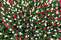 Bovenaanzicht van een tulpenveld op een bloemententoonstelling in Groot-Bijgaarden (België)