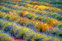 lavendelveld met klaprozen schilderachtig bewerkt.