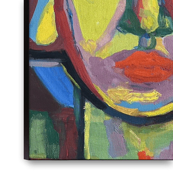 Kleurrijk figuratief werk voor een moderne stijl in huis of juist als tegenhanger van het klassieke. Het originele werk is gemaakt met olieverf.