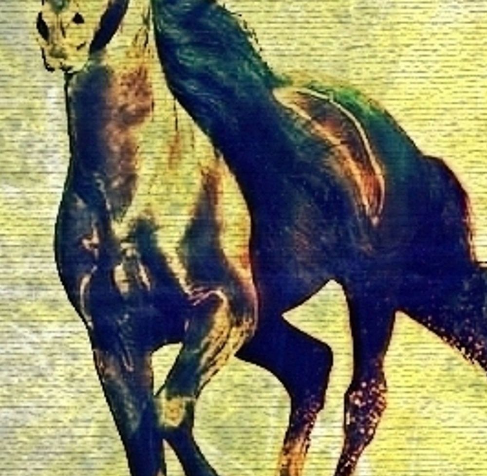 Prachtig paard in een woestijnachtige omgeving met grunge effect. Mooie eye-catcher aan je muur als je van paarden houdt.